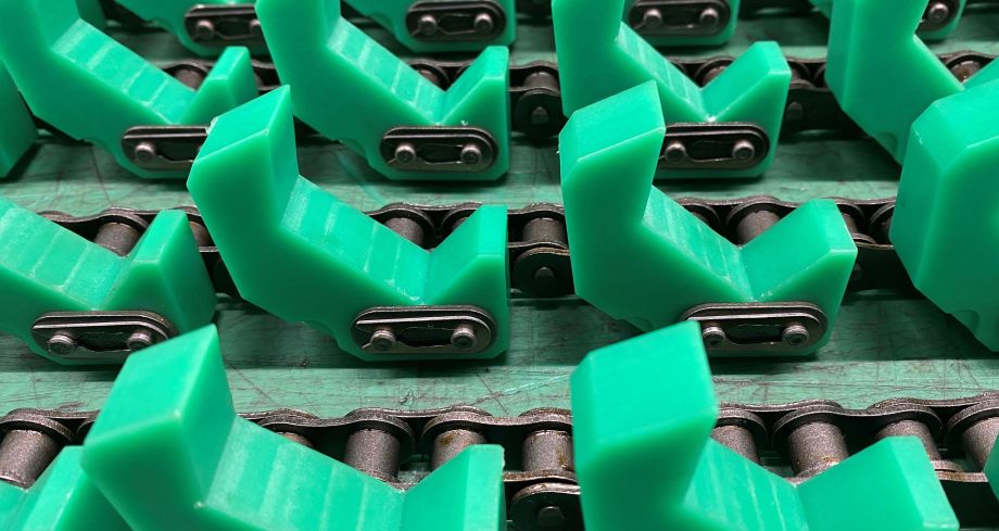 Durch eine enge Zusammenarbeit mit dem Kunden wird die Anforderung an die Kette genaustens festgelegt und eine passende Lösung erarbeitet. Eine sorgfältige Materialwahl der Anbauteile und die Verwendung von hochwertigen Präzisions-Rollenketten gehören bei uns zum Standard. Bei Parallellauf von zwei oder mehreren Mitnehmerketten werden diese auf unserer Kettenreckmaschine auf gleiche Länge vorgereckt. Selbstverständlich legen wir auch ein Augenmerk auf die geeignete Schmierung der Kette. Dadurch erreichen wir eine lange Lebensdauer und eine hohe Produktivität in der Anlage.